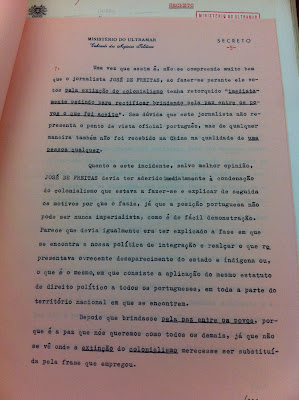 Se à frente do jornalista brindaram ao fim do colonialismo, pois que Freitas brindasse também, explicando «de seguida os motivos por que o fazia, já que a posição portuguesa não pode ser nunca imperialista, como é de fácil demonstração (…) Deveria igualmente ter explicado a fase em que se encontra a nossa política de integração e realçar (…) [que] o mesmo estatuto de direito político [se aplica] a todos os portugueses, em toda a parte do território nacional em que se encontrem».
